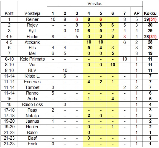 1.koht/10p; 2.koht/8p; 3.koht/6p; 4.koht/5p; 5.koht/4p; 6.koht/3p; 7.koht/2p; 8.koht/1p.