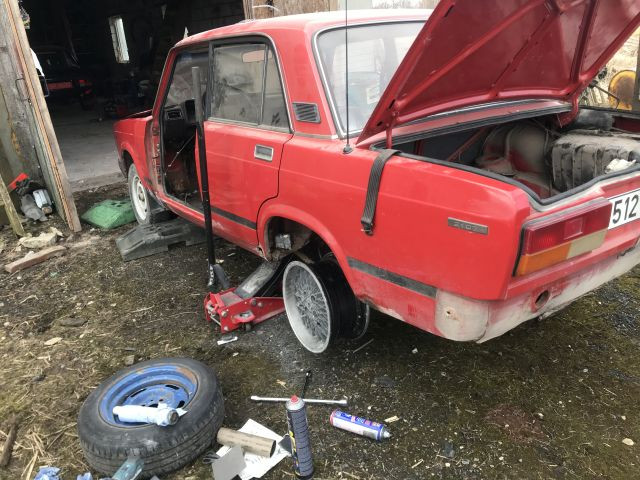 Vahepeal sai vanaraua platsilt ära veeretatud 2101, oli natuke liiga palju asju mida päästa. Vajalikud jupid küljes, osad jupid omale lattu ja teised suutsin maha müüa juba. Kere ise oli nii mäda et kui köiega külje peale tõmbasin siis küljekarp vajus vastu istme raami